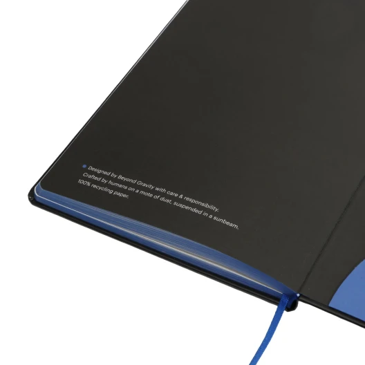 Tauche ein in die Weite des Universums – Seite für Seite. Das Beyond Gravity Notizbuch verbindet die Faszination des Weltalls mit Raum für grosse Ideen. Sammle Gedanken, halte Visionen fest und schaffe neue Horizonte. Ein hochwertiger Begleiter für alle, die weiter denken wollen.